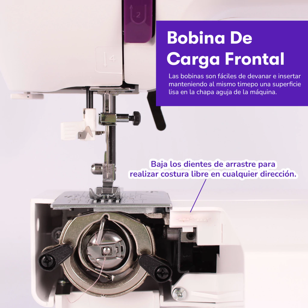 Dependiendo el pie prensatela que le coloques vas a poder realizar dobladillos, bordes decorativos, revestimientos, sobrehilado e inclusive transformarla para trabajos más complejos, como colocar cordones utilizando la aguja gemela